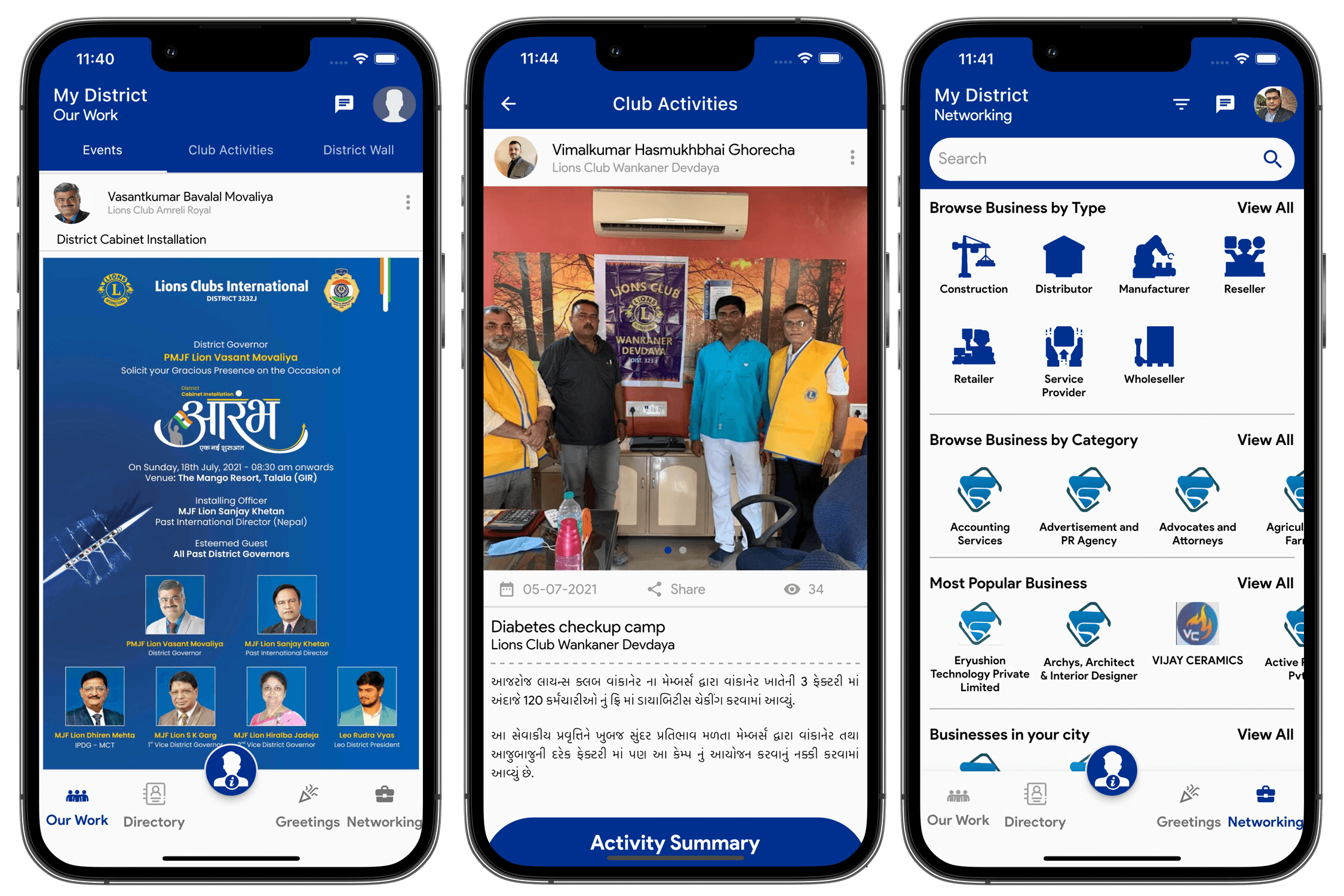 An unique digital mobile application which provide an platform to connect the member on every aspect of being member. This application can be a platform to share club social activity, promote district event banners, district digital directory to access member's information, blood group wise blood directory, increate fellowship by sharing greetings card on special days, expand business through business networking by creating unique business profile and more.